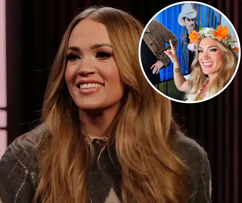 The country superstar, 42,— who famously won the show back in 2005 — shared the snaps while casually pointing out moments on the Idol screen. In the photos, Underwood was all smiles as she posed in front of a large television showing scenes from American Idol, cheekily gesturing at the judges onscreen. She leaned fully into the island setting, wearing a golden-toned dress paired with a traditional white lei and a vibrant flower crown dotted with orange and white blooms.