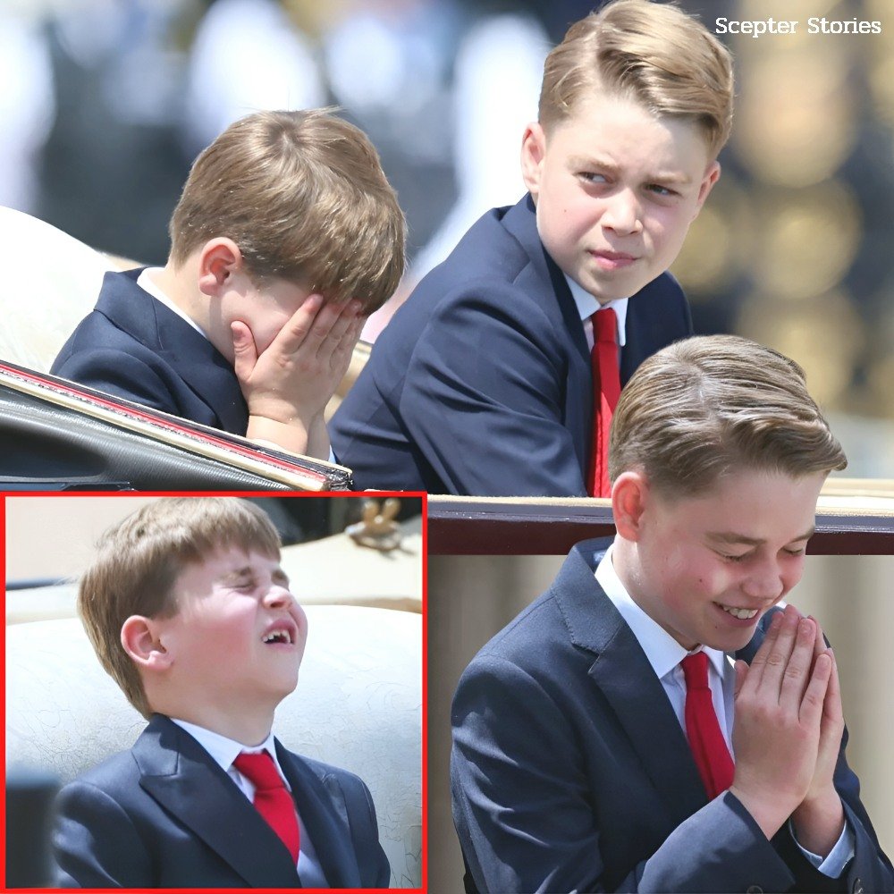 Once again, the world found itself completely captivated not by a grand speech, not by the King’s presence, not by the regal traditions unfolding below… but by the irresistible, unstoppable energy of Prince Louis. And this time, he didn’t just steal the show. He stole his big brother’s composure. He turned Prince George — usually composed, observant, quietly mature — into a giggling mess on camera. And when fans spotted a certain detail on Louis’ face, everything went from funny to viral.